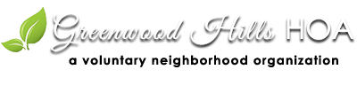 Greenwood Hills HOA is a voluntary neighborhood association with a social calendar. Unlike homeowners associations that have common area maintenance responsibilities, architectural control, and mandatory dues, Greenwood Hills HOA does not does not own property, has no responsibilities for maintenance or architectural control, and membership is voluntary...